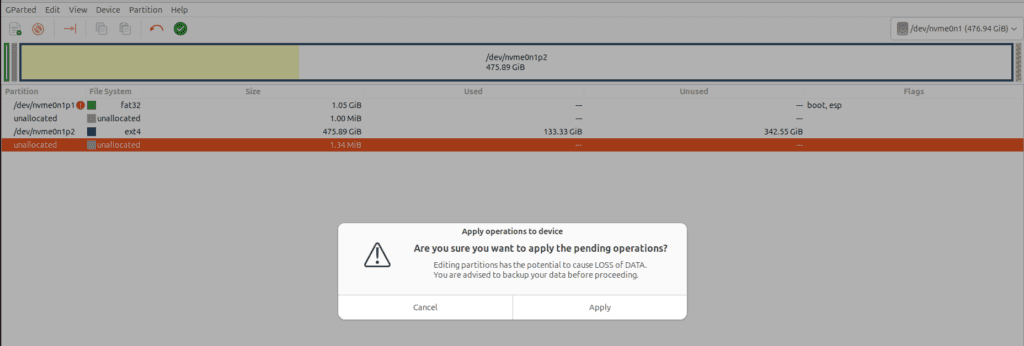 This is also useful for someone who is trying to make space-related changes. First, we need to make a bootable pendrive and run the commands below, booting into live Ubuntu.
